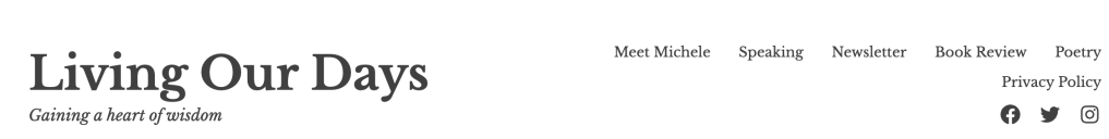 One difference is frequency. Lately, I’ve been publishing here at Living Our Days (the blog) on Wednesdays and Sundays. The newsletter comes out monthly, on the third Thursday of the month.
